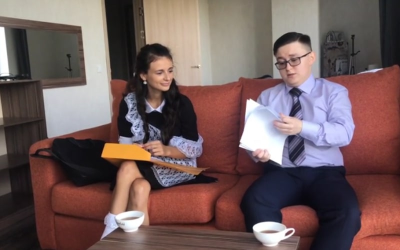 Школьница зашла к однокласснику в гости, что бы тот подтянул её по английскому языку, с которым у малолетки проблемы. Парень с внешностью ботаника, в огромных очках, действительно по-началу ей помогает, но после лезет к лоли в трусы, а та и не против. После недолгих оральных ласк, парнишка вставляет девке член прямо в жопу, ведь та ещё целка, и неплохо так дерёт.