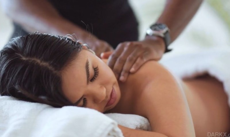 Азиатка пришла на сеанс массажа и заодно трахнулась с негром