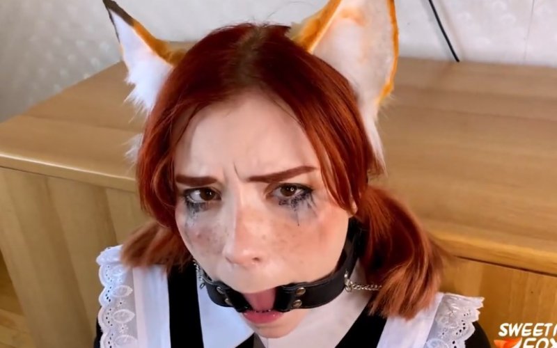 Молоденькая девка нацепила на себя лисьи ушки и школьную форму, так как любит баловать своего парня. Тому понравился презент и он начал трахать девку в рот, запихивая свой болт глубоко в горло. Рыжуля смиренно сосала и давилась слюнями, всё для любимого. Надела очки и в финале получила много спермы на них и милое личико.